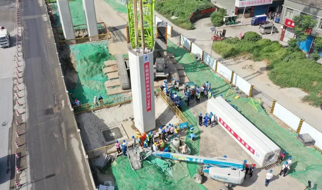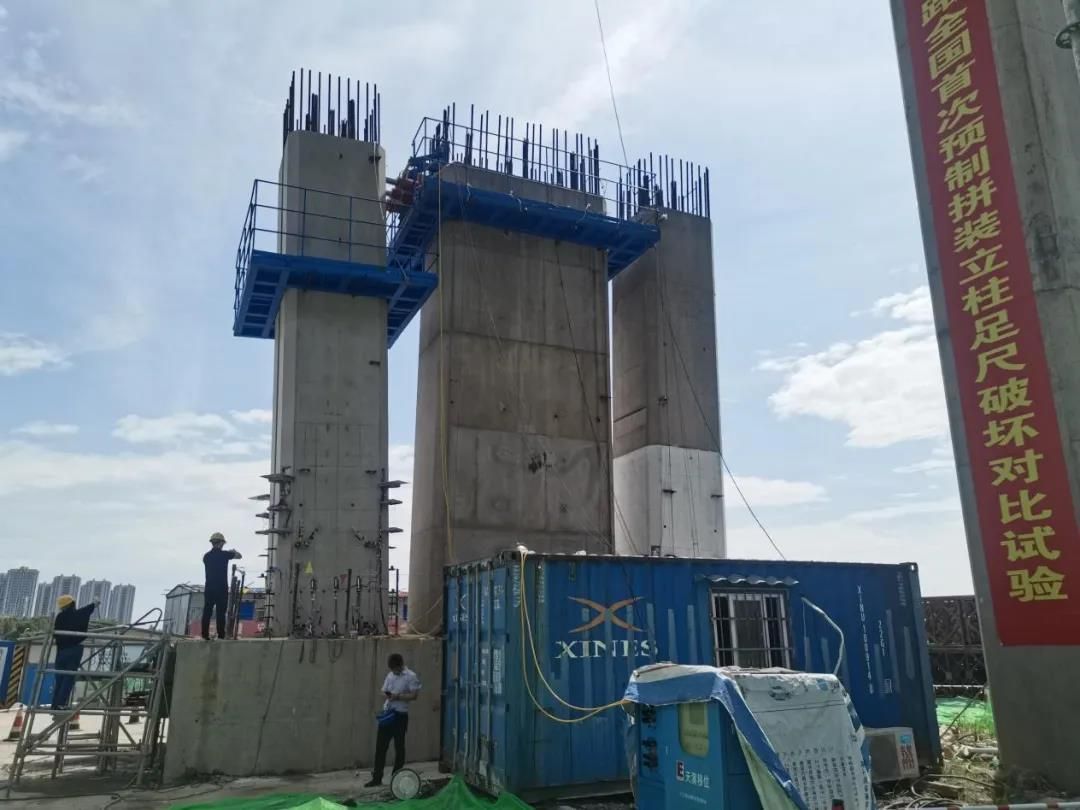 预制拼装灌浆套筒连接空心立柱完成架设
