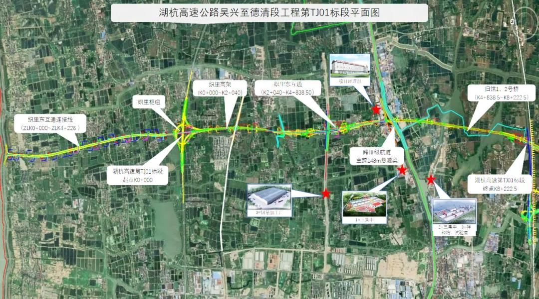 湖杭高速公路吴兴至德清段工程是浙江省“十四五”期间聚焦交通设施建设的重大建设项目之一,也是湖州市单体投资规模最大的一条高速公路工程。三公司湖杭高速公路1标起于湖州市吴兴区织里镇,与申苏浙皖高速公路交叉,终点为跨沪苏湖高铁起点,主线全长8.223千米,设计时速120千米,双向六车道。
